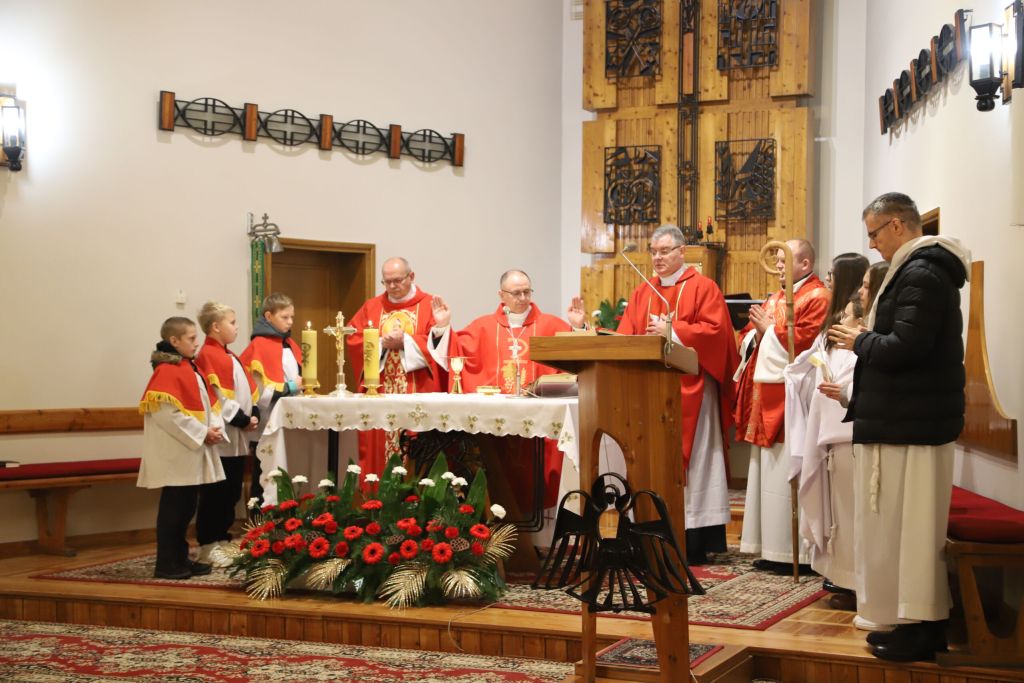 za 50 lat istnienia świątyni. Obecny murowany kościół został poświęcony dokładnie pół wieku temu, 27 listopada 1975 roku, przez Prymasa Stefana Wyszyńskiego. Poprzednia, drewniana świątynia, spłonęła w 1945 roku. Uroczystościom jubileuszowym przewodniczył bp Radosław Orchowicz, zaś homilię wygłosił ks. prof. Bogdan Czyżewski. W trakcie uroczystości przypominano historię odbudowy kościoła, która była możliwa dzięki zaangażowaniu wielu parafian, duszpasterzy, darczyńców, a także samego kard. Wyszyńskiego.